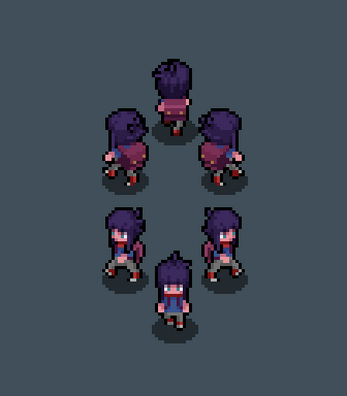 Very interesting approach to left/right walking animations compared to the standard 4 or 8-directional animations. I wanted to make something like the right-down style but I didn't like how it looked while walking right and up diagonally. Your sprites are a perfect compromise for top down styles. Thank you for the sprites! <3